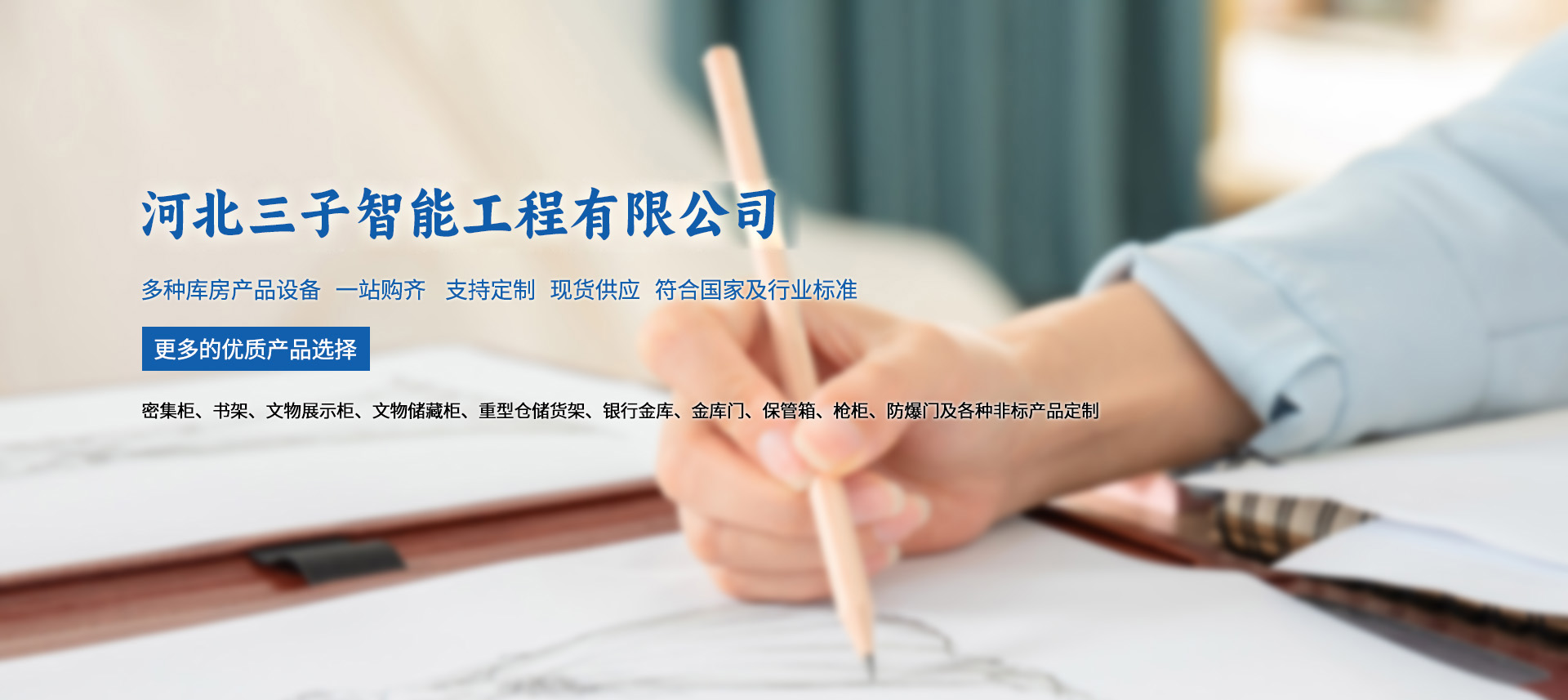 河北三子智能工程有限公司主營密集柜、書架、文物展示柜、文物儲藏柜、重型倉儲貨架、銀行金庫、金庫門、保管箱、槍柜、防爆門及各種非標產(chǎn)品定制。我們集研發(fā),設計,生產(chǎn),銷售和服務于一體,擁有國內(nèi)先進的設備和專業(yè)的制作團隊,我們秉承踏實,創(chuàng)新,責任的企業(yè)精神服務于檔案存儲,倉儲物流,農(nóng)業(yè)部,博物館,美術(shù)館,銀行,部隊,學校等多個領(lǐng)域,我們始終堅持用戶至上和精益求精為客戶提供優(yōu)質(zhì)的產(chǎn)品及服務。